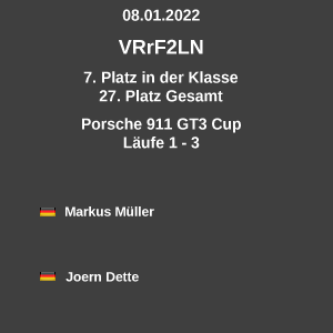 Porsche Cayman GT4 #612 Joern Dette VRrF2LN Klasse SP10 8. Saison seit 2013