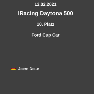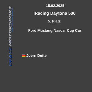 Ford NSCS Cup Car #xx Joern Dette iRacing Daytona 500 Main Event Samstag Jährliches Main Event über 6 Tage verteilt genauere Daten folgen