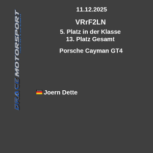 Porsche Cayman GT4 #612 Joern Dette VRrF2LN Klasse SP10 8. Saison seit 2013