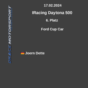 Ford NSCS Cup Car #xx Joern Dette iRacing Daytona 500 Main Event Samstag Jährliches Main Event über 6 Tage verteilt genauere Daten folgen